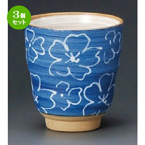 3個セット☆ 夫婦湯呑 ☆ マット青桜湯呑 [ 80 x 85mm ] 【和食器 飲食店 お祝い 夫婦 】