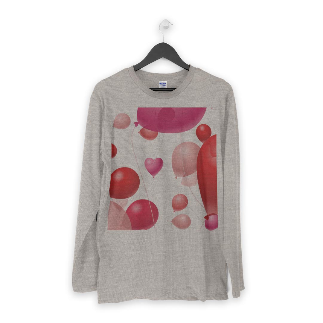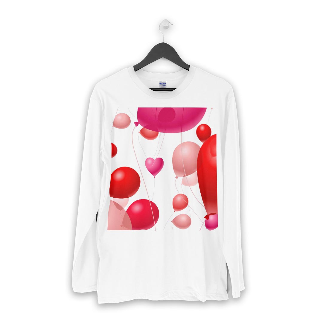 ロング tシャツ メンズ 長袖 ホワイト グレー デザイン XS S M L XL 2XL Tシャツ ティーシャツ T shirt long sleeve 004047 風船 ハート ピンク