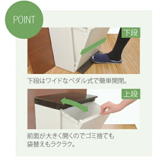 上段は片手でワンプッシュ、下段はペダル式で簡単に開閉できます。