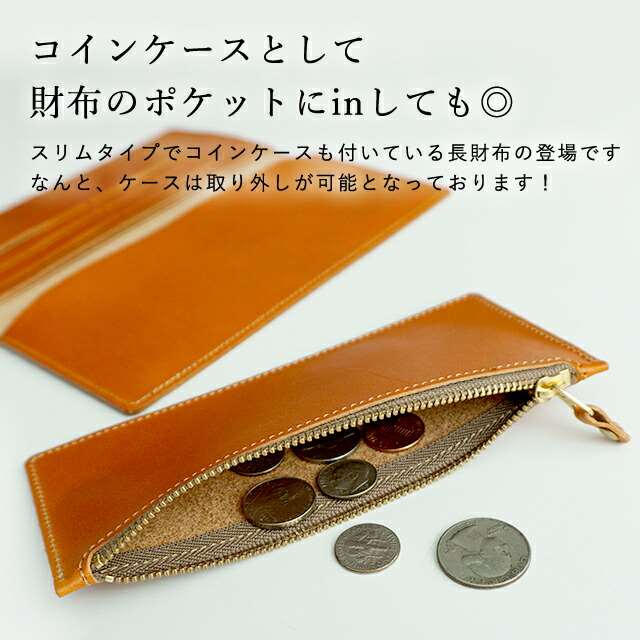 カラーキャメル、ダークブラウン 、グリーンサイズ長財布本体:ヨコ約19.5cm タテ約9.7cm 厚み約1.5cm(中身がない状態) チャック付きケース:ヨコ約17cm タテ約7.7cm仕様長財布本体:カード入れ 6つ ロングポケット 3つ注意事項※本製品は、1枚革を使用しているため、 トラ目・色むら・血筋・治りキズ・へこみ などの個体差をあえて隠さず、革素材本来の魅力を活かした仕上げになります。