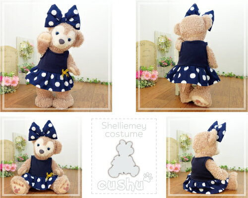 シェリーメイ 洋服 コスチューム 【日本製 】 ぬいぐるみ用 服 着せ替え Sサイズ かわいいディズニー シー くま Duffy 【242S.一着でキマる!ミニーちゃんコーデ 紺水玉 ローウエスト ワンピースとリボンの2点セット】
