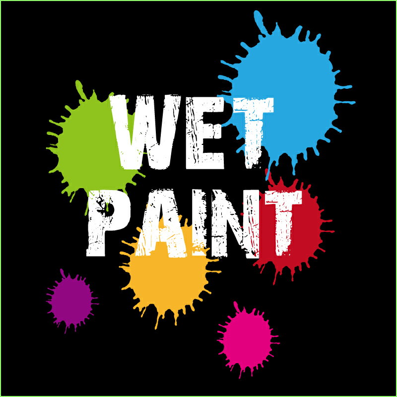 「WET PAINT」ペンキ塗りたてTシャツ。